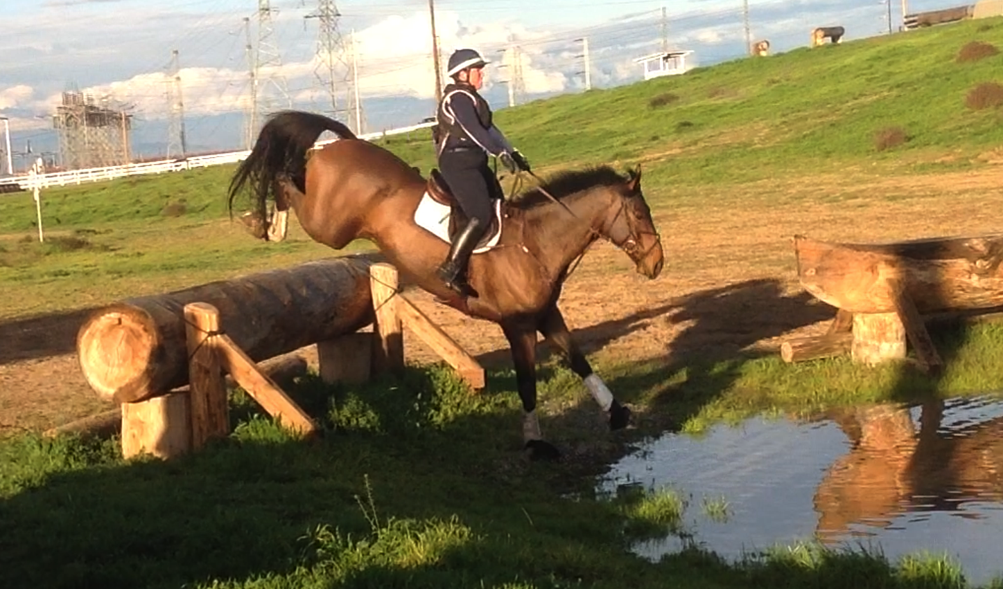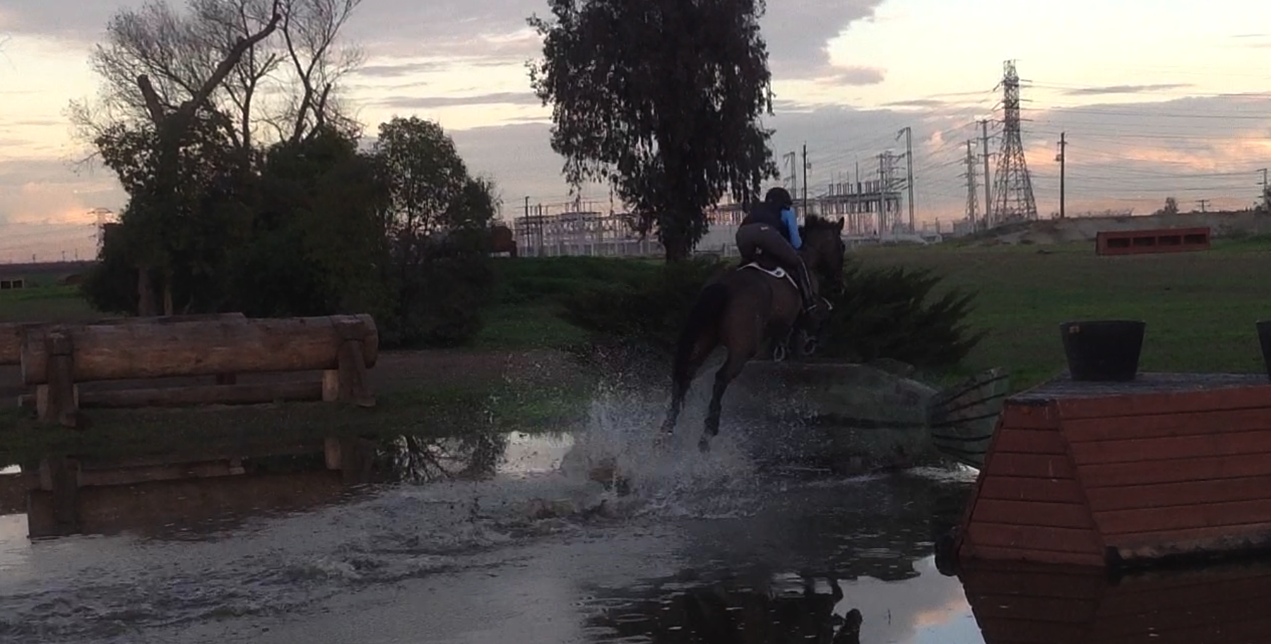 From there, all groups moved to the main water complex at the Fresno Horse Park, which offered lots of different options for the riders. They started with a fence before the water, through the long stretch of water, and house out of the water. Then came back over that same house into the water with a bending line to a bigger rolltop out of the water. And the upper level groups jumped from water to water over a "snake" fence, which was positioned right in the middle of the whole water complex. They also went on to jump some bigger logs into the water, and came out over another chevron… again with guide rails on it.